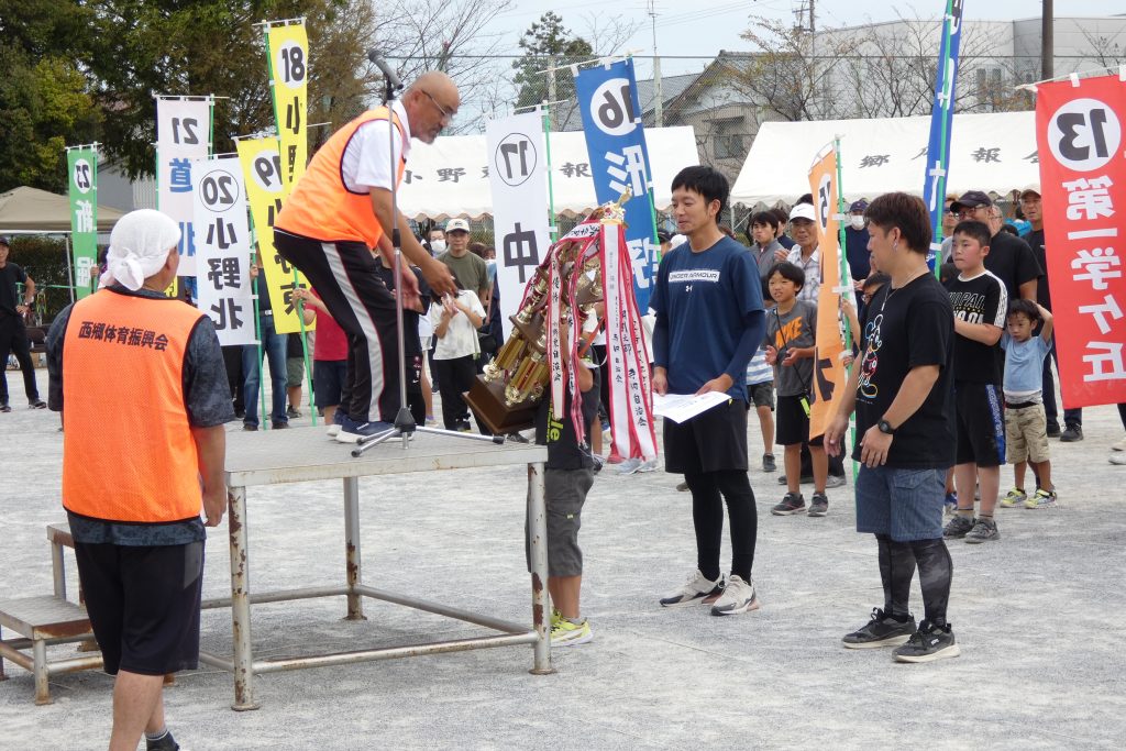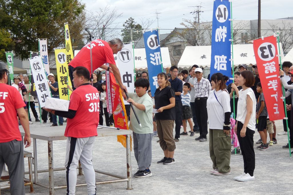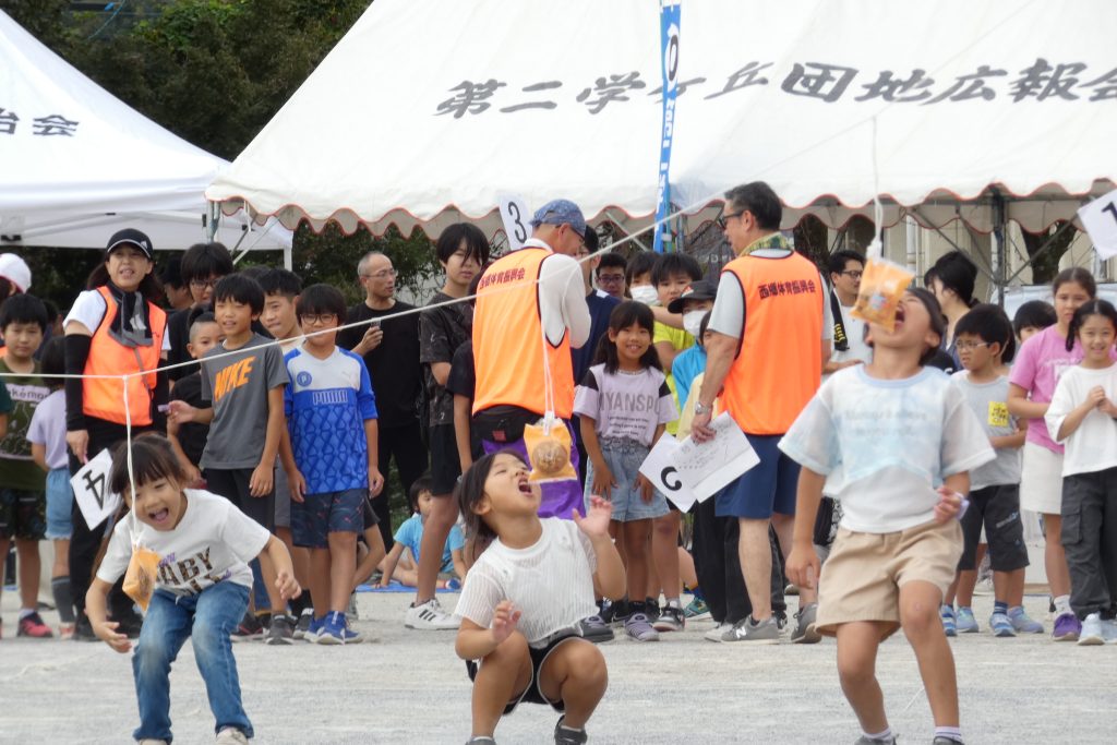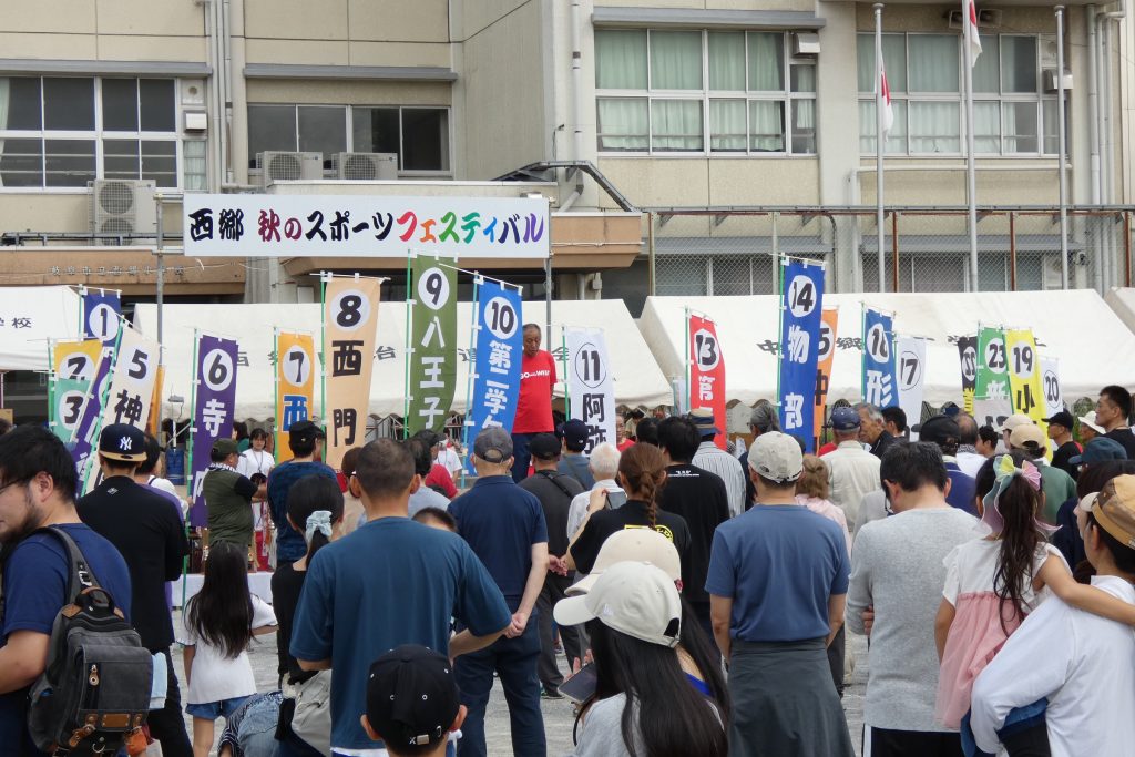 10月12日(日)、西郷小学校グラウンドにて西郷自治会連合会主催の「秋のスポーツフェスティバル」が開催されました。旧市民運動会においては年齢別リレーなど選手の選考が難航したり綱引きなども大勢の選手が必要で、各自治会の役員さんや選手団長さんも大変苦労されていました。この秋のスポーツフェスティバルと名称を変えたリニューアルイベントは「パン食い競争(小学生200名まで)」や「キョウリュウとかけっこ(幼児60名まで)」のような来場者の自由参加だけでなく、自治会対抗として人数を減らした「綱引き(男女各5名以下)」や「ストライクゲーム(1チーム5名)」が自治会コミュニティとして維持されています。