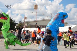 10月12日(日)、西郷小学校グラウンドにて西郷自治会連合会主催の「秋のスポーツフェスティバル」が開催されました。旧市民運動会においては年齢別リレーなど選手の選考が難航したり綱引きなども大勢の選手が必要で、各自治会の役員さんや選手団長さんも大変苦労されていました。この秋のスポーツフェスティバルと名称を変えたリニューアルイベントは「パン食い競争(小学生200名まで)」や「キョウリュウとかけっこ(幼児60名まで)」のような来場者の自由参加だけでなく、自治会対抗として人数を減らした「綱引き(男女各5名以下)」や「ストライクゲーム(1チーム5名)」が自治会コミュニティとして維持されています。